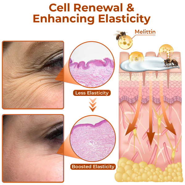 AnnieCare® Collagen + Bee Venom Revitalizing Eye Cream contains Melittin, the main peptide in bee venom, which works like a natural botulinum toxin to relax facial muscles and reduce the appearance of dynamic wrinkles. With continued use, it provides long-lasting results , helps improve skin texture, and gradually reduces the signs of aging.