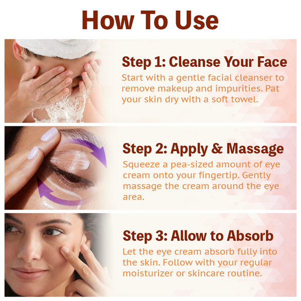 Take an appropriate amount on your fingertips and gently apply around the eyes in the morning and evening. Use it as a midday brightener or mix it with foundation or concealer to give your makeup a dewy, flawless look.